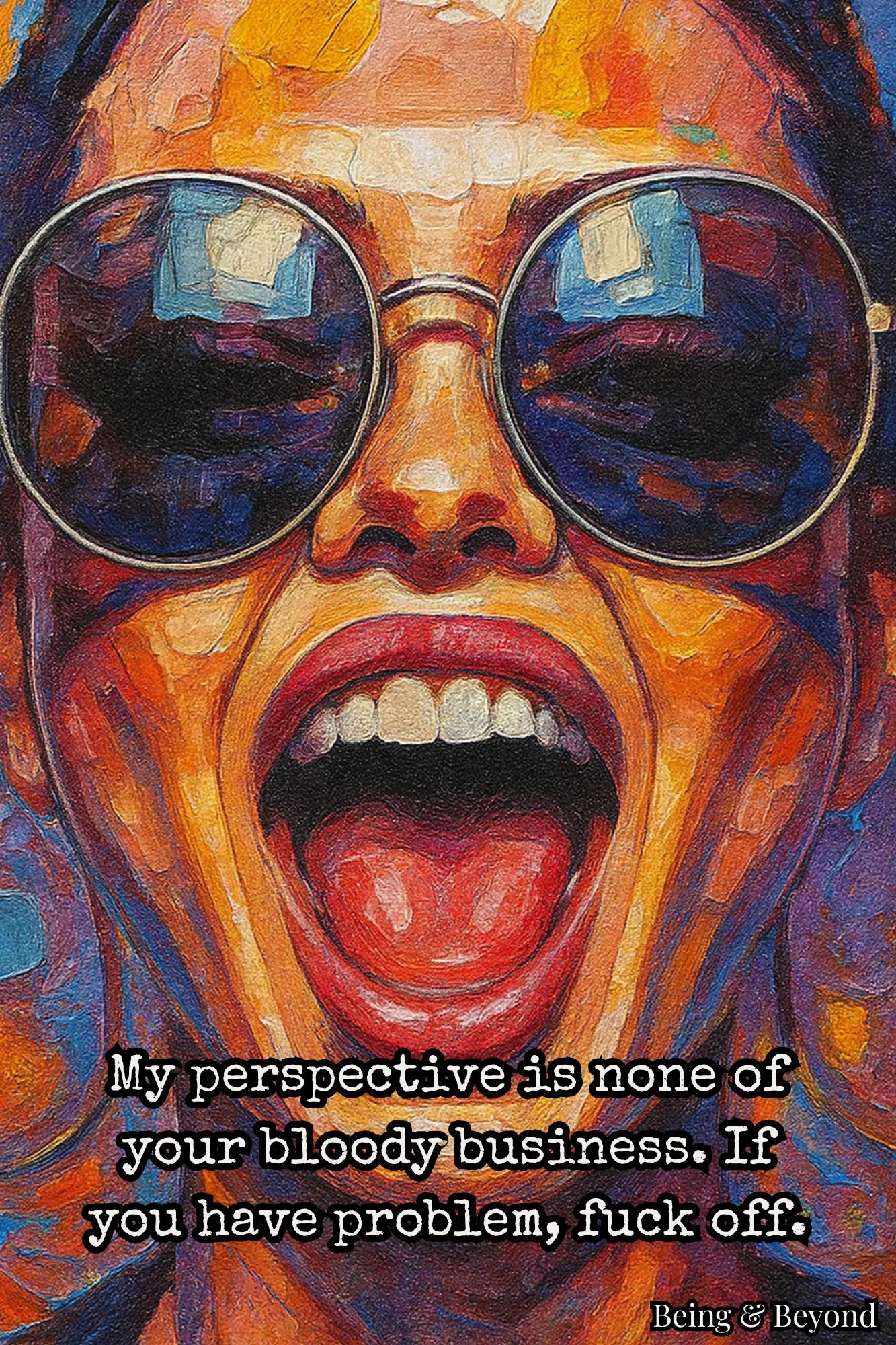 This verse is very direct and rebellious. At its heart, it's a brave statement of personal freedom: your beliefs, your views, and your way of seeing life are all yours. No one else can vote or say no. If someone doesn't like it, judges it, or tries to get involved, the answer is simple and clear: back off. It's not about being rude for the sake of being rude; it's a raw line that keeps people from getting in, with strong language to make the point clear. In a world full of opinions and pressures, this is a reminder that true freedom begins with owning your own mind and not needing to apologise.